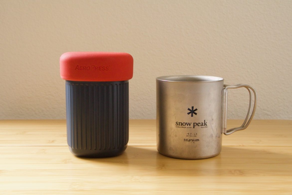 AeroPress GO とsnow peak(ダブルウォール450)のマグカップを横に置いてみました。