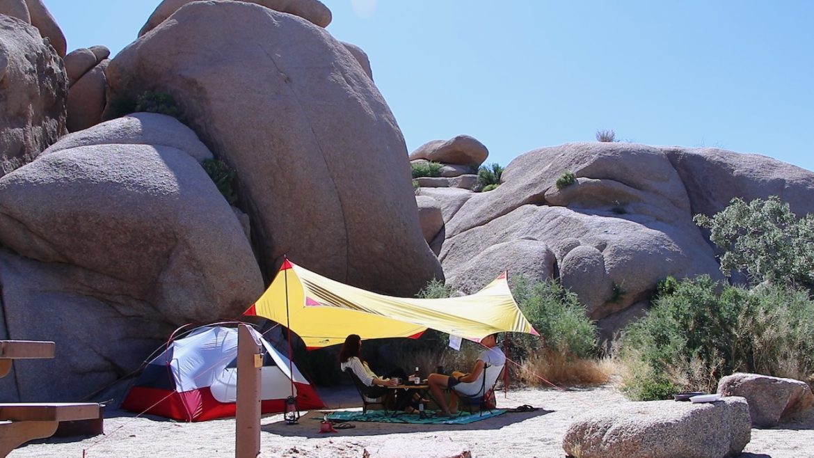 泊まるサイトによっては、大きい岩の真横にテントを設営できます。サイトから見れる景観はもちろん、時間帯によっては岩で影が作れられるので、暑さ対策にもなります。